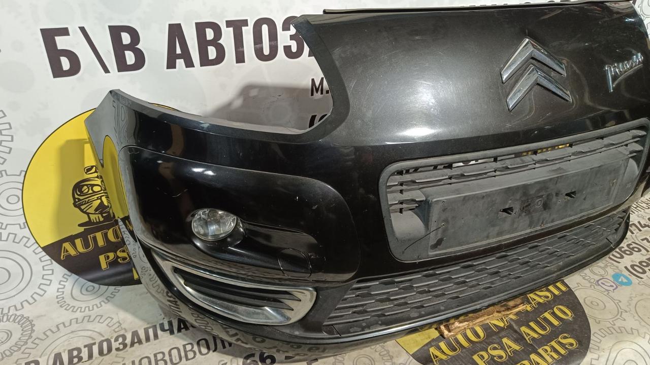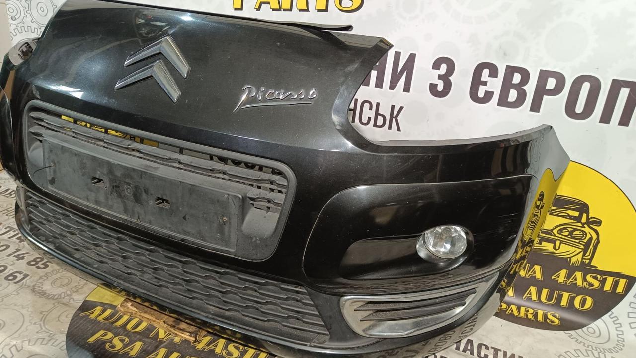Б/в передній бампер до рестайлінгу для Citroen C3 Picasso, під штатні посадочні місця, сумісність залежить від року та комплектації. Оригінал.
