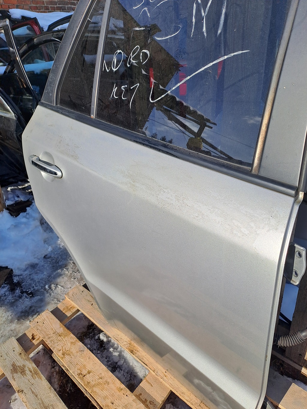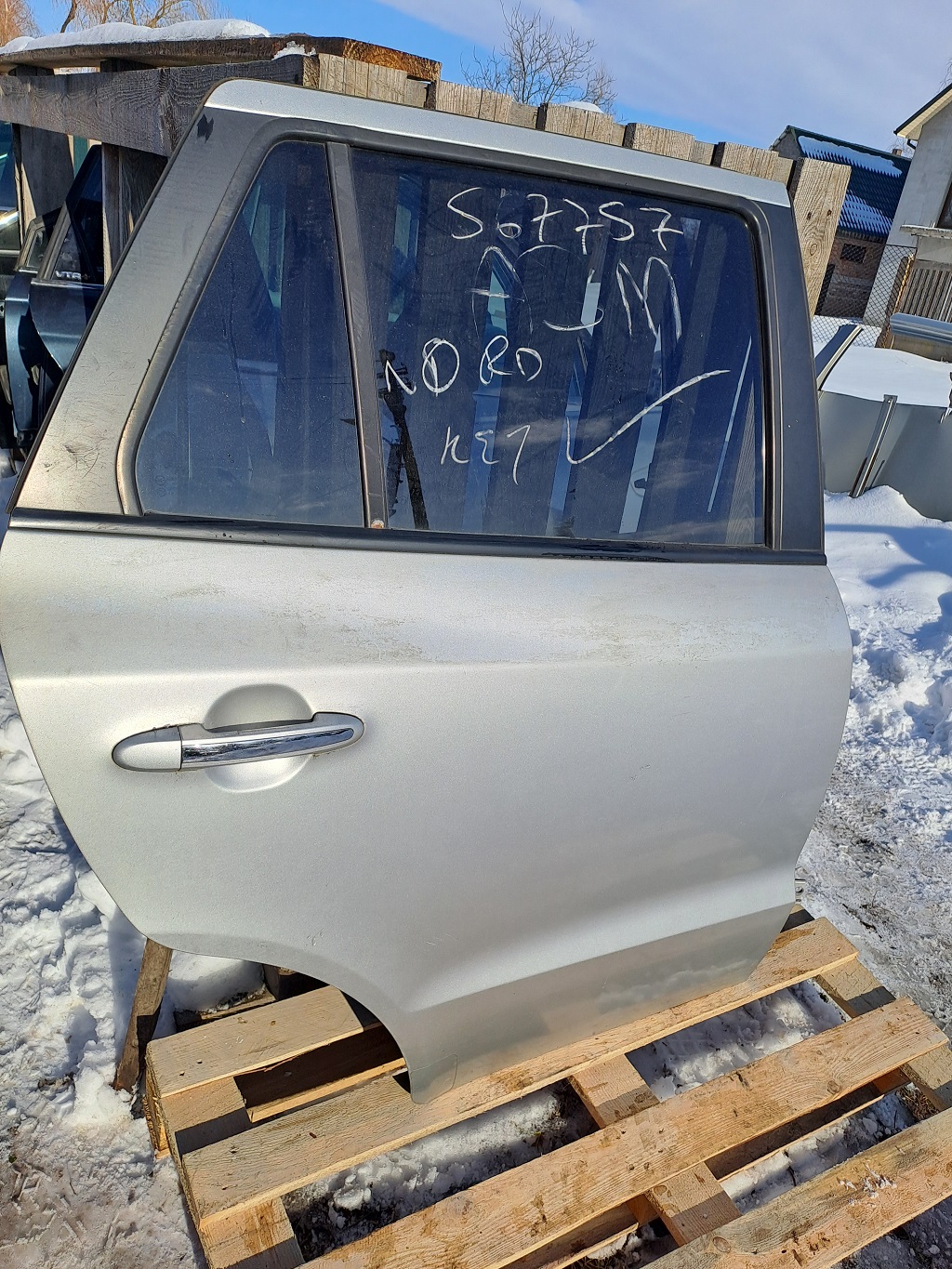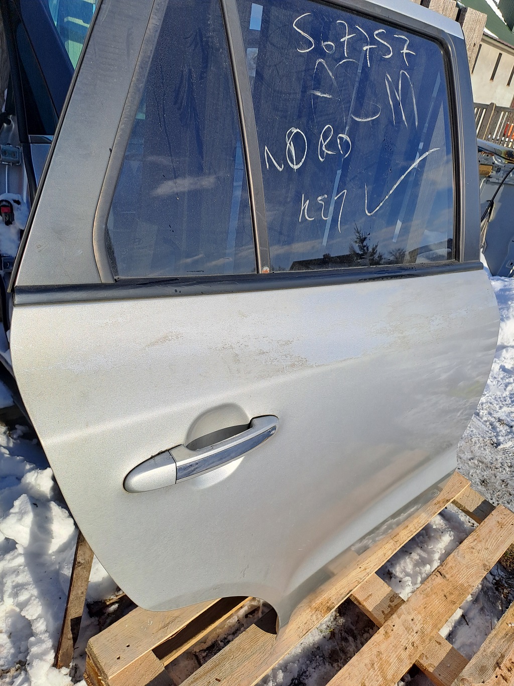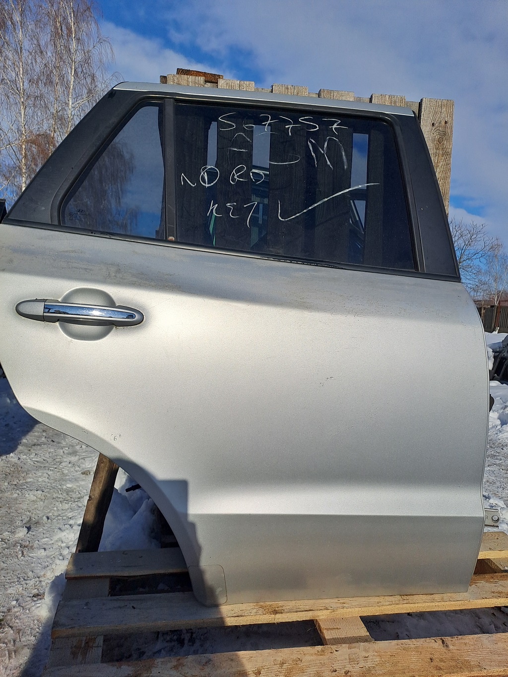 Оригінальні задні праві двері для Hyundai Santa Fe II (2006–2012). Заводська кузовна деталь у хорошому стані, геометрія не порушена, підходить для встановлення у штатні місця без підгонки. Код фарби SLS дозволяє підібрати двері у рідному заводському кольорі автомобіля.