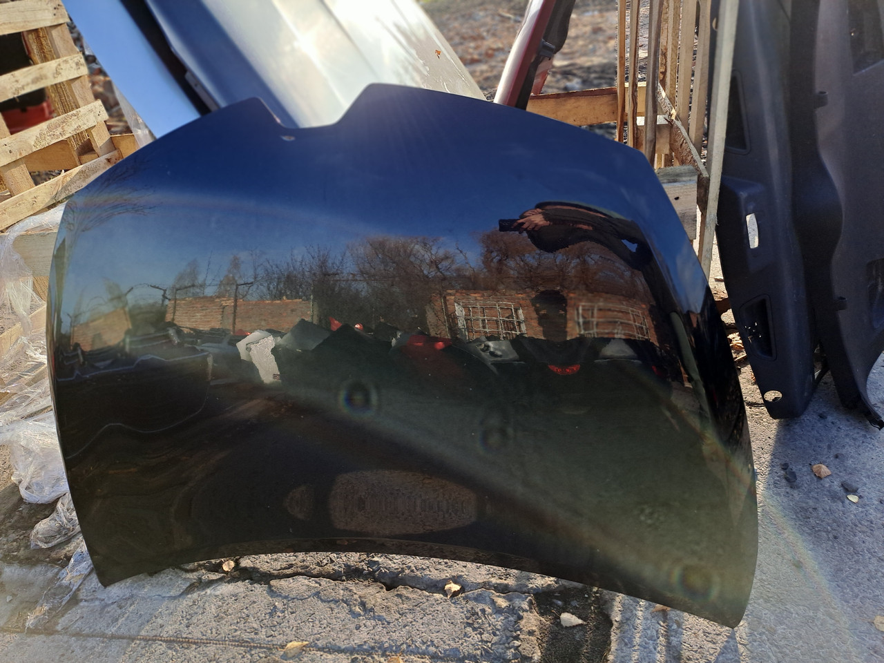 Б/в капот Renault Clio IV хетчбек, код фарби TEGNE, під штатну заміну, сумісний з заводським замком і петлями. Оригінал.
