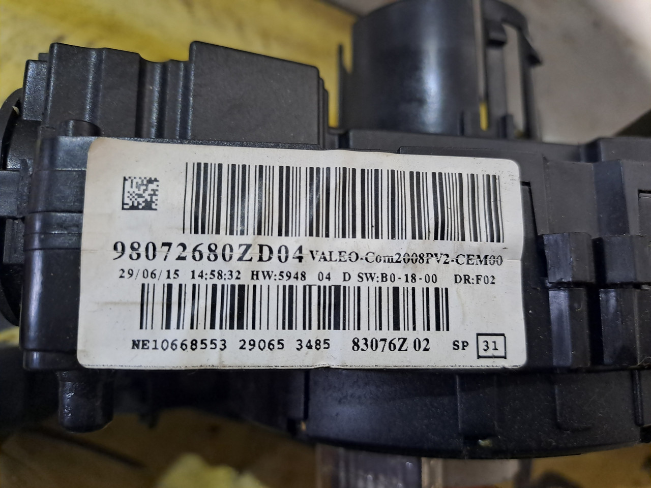 Б/в перемикач підрульовий Peugeot 2013–2021 за номером 98072680ZD для керування світлом поворотами та допоміжними функціями під кермом у штатні розʼєми. Оригінал.