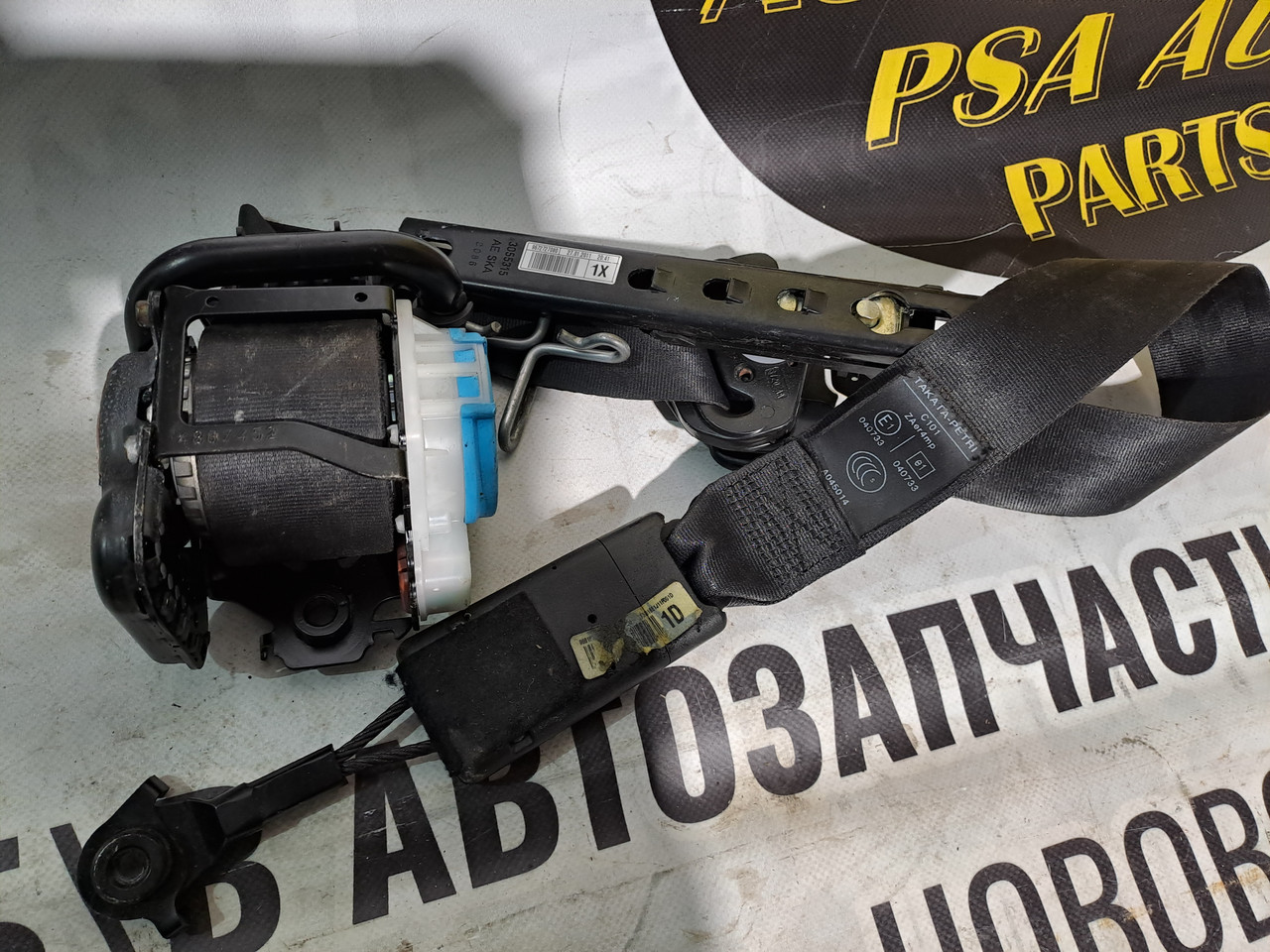 Б/в ремінь безпеки передній правий Citroen C4 II, штатна заміна з інерційним механізмом і кріпленнями під заводські місця. Оригінал.